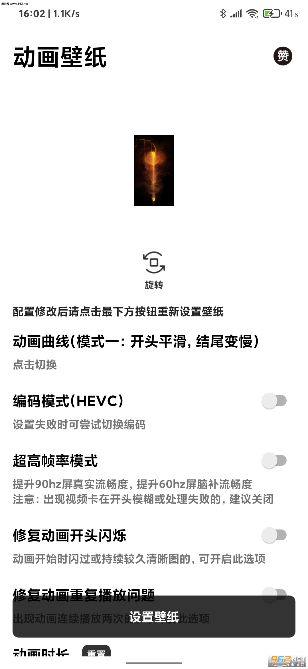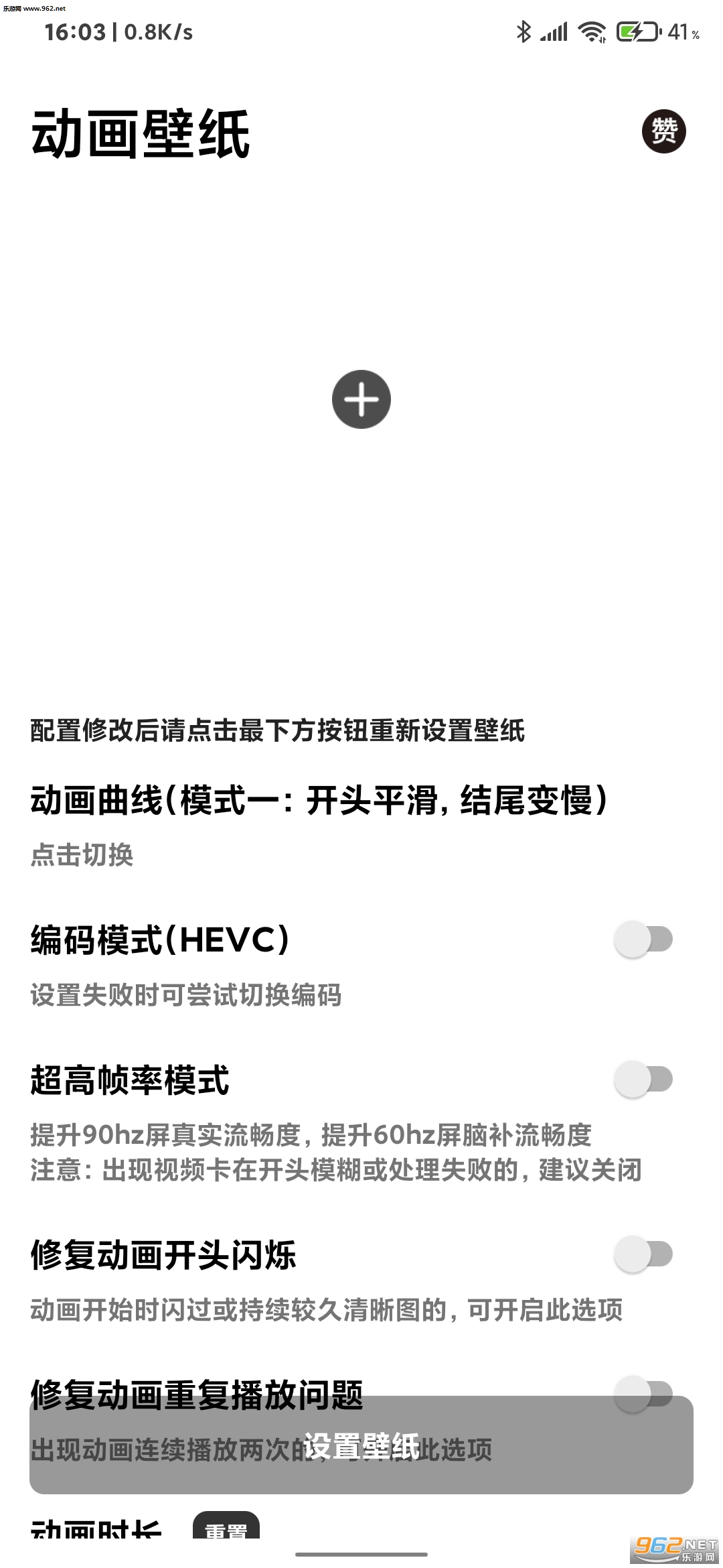 使用默认参数,并把画质调到最低,时长调到最低,尝试是否可以动,可以的话慢慢调高这两个参数,直到一个可以动的最高画质,自己在动画与画质之间权衡,或者重启手机有几率解决