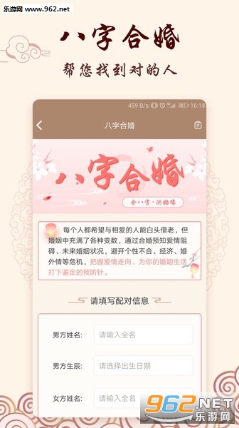 八字算命软件,生辰八字取名合婚为您提供专业的八字算命服务。依据您的生辰八字,可以给您取个好名,挑选一段美好佳缘。让您把握人生命运,工作事业顺顺利利、爱情家庭和和美美、身体身心健健康康。