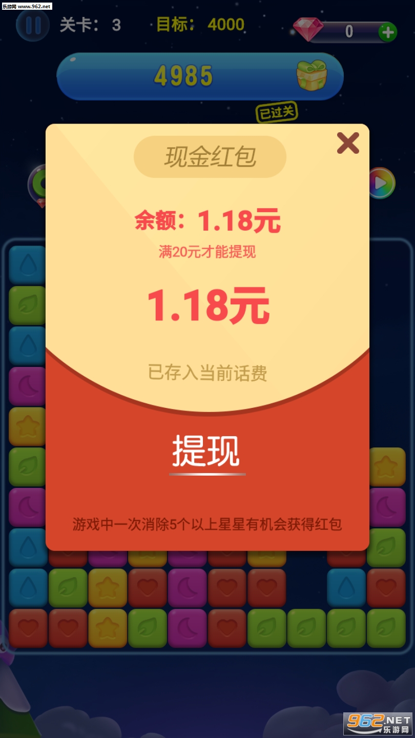 3、轻松消除无比的愉快,动动手指欢乐无限,领取红包。