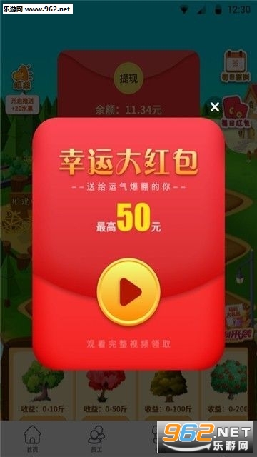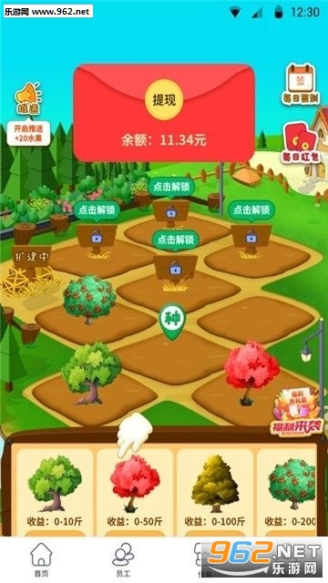 《福气果园红包提现版》是一款非常好玩的模拟养成经营类的网赚手机游戏软件,玩家在游戏中扮演一名农场主,你需要不断的种植果树,完成你的任务。操作方式简单,任务种类丰富,超多现金红包奖励等你来领取,喜欢的话就快来下载吧!