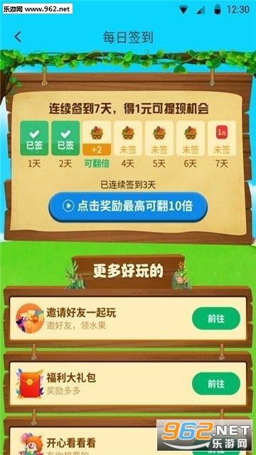 福气果园红包版是一款非常有趣的合成放置类手机游戏,在游戏中玩家们可以拥有一片自己的果园,简洁的画面,超多不同的金币奖励可以解锁,你可以在这里拥有各种不同的水果种子,用这些你可以让自己的果园变得更加的丰富,得到红包的奖励方法非常简单,让自己的水果成长即可,成熟的水果越多,得到的奖励红包也会越丰厚。
