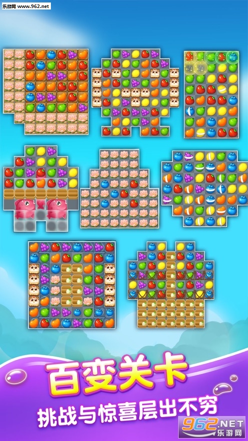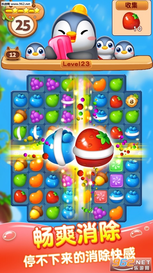3、海量水果元素,华丽的消除特效,无限的激爽。