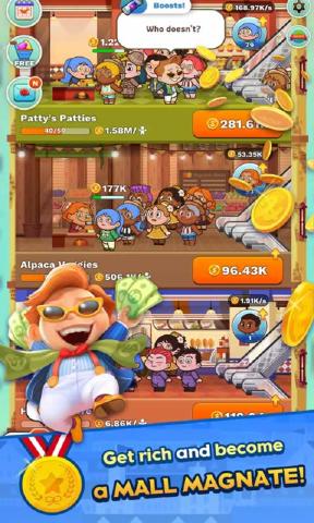 《放置商场大亨赚钱版》是一款商业经营模拟小游戏,游戏中玩家将会成为一名挥金如土的富豪,来去经营一家自己的商场,来通过升级来让商场变得更加有吸引力,无论是通过货物的质量,广告的宣传,商场内部的装饰亦或是服务质量,但凡能够提高顾客的方式就要干个不停,全方面的为顾客服务,来赚取更多的钱,游戏中除了普通金币之外,完成任务或者触发事件可以领取钻石福利,钻石可以直接提现到账,让玩家真正的来体验赚钱的滋味。