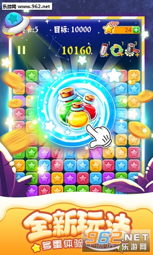 快玩消星星还原经典的三消玩法,操作简单易上手,消除的分数越高领取的红包奖励也就越丰厚。丰富的关卡提供挑战,挑战成功也有相应的红包可以领取,道具可以帮助玩家快速的过关。