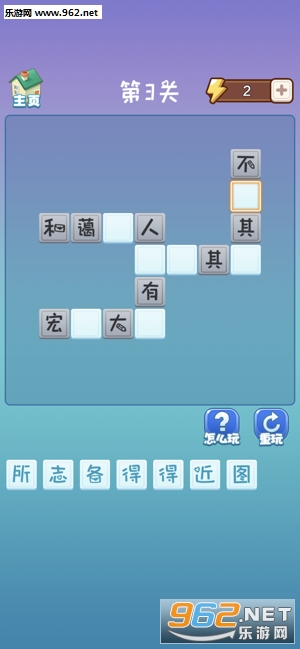 1、十分轻松的闯关模式,系统将成语里的四个字,都已经给出了三个了。