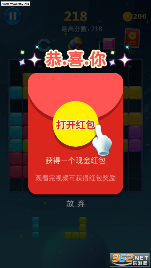 《拼图游戏金币红包版》是一款有趣的消除休闲赚红包游戏,游戏的玩法有点像是俄罗斯方块,玩法非常的经典且容易上手,而且你还可以一边玩游戏一边赚红包,玩一会儿就有红包出现,50元就可以提现了,快来试试吧。