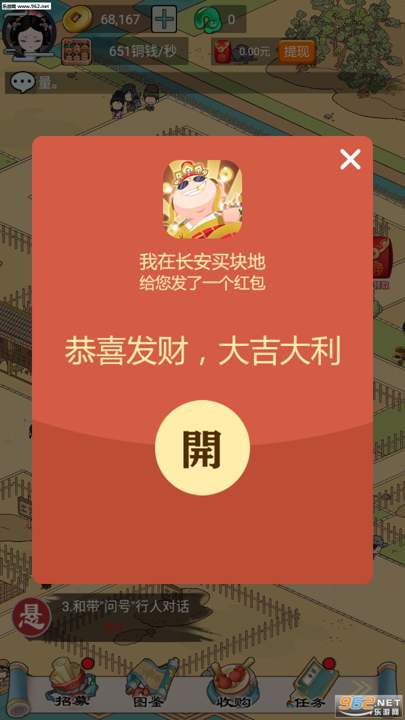 《我在长安买块地红包版》是一款放置经营类小游戏,游戏中玩家将拥有属于自己的长安城来进行管理,玩家将如何将这片长安城从起初的一个小农成逐渐发展成繁华的大城市,这一切都要看玩家的管理功力啦,游戏中福利多多,每完成任务就会获得红包奖励哦,感兴趣的小伙伴们赶紧来962下载加入吧。