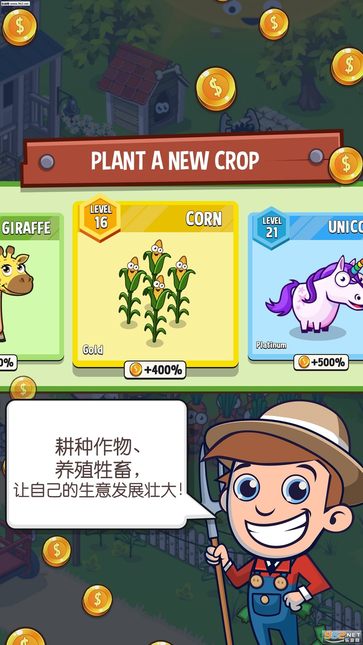 3、通过提高你的土地登记可以加快蔬菜的成熟力度,赚钱也更加快速。