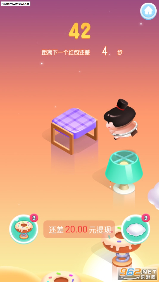 完美重合红包版是一款走在路上抢红包的跳跃冒险游戏,手指点击屏幕蓄力,让大胖子完美跳跃到平台中心,每次完美重合可以收获积分,在跳跃过程中注意步数提醒,还需要完美跳跃几次才能领取红包,无尽挑战模式,跳一跳玩的很厉害的小伙伴,会在领红包的路上停不下来。