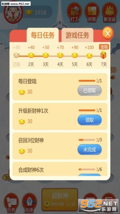 3、同时不断提高财神爷的等级,这将也能让你获取更多的收益。