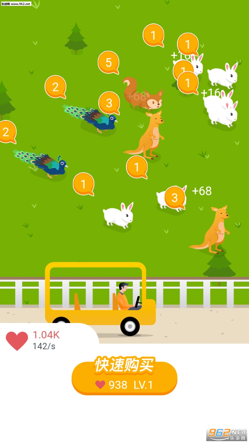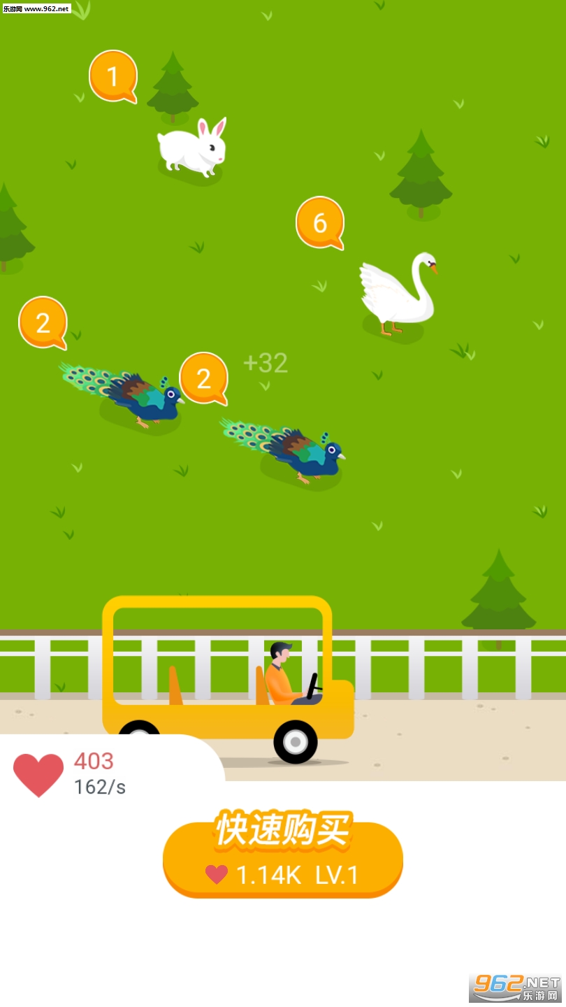 1、从初始的小兔子开始,获得爱心解锁更多动物,让动物园变得更加热闹;