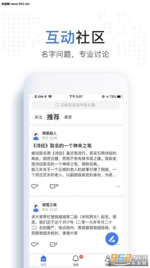 1、是一个非常专业的取名平台,可以在平台悬赏,发帖征集名字;