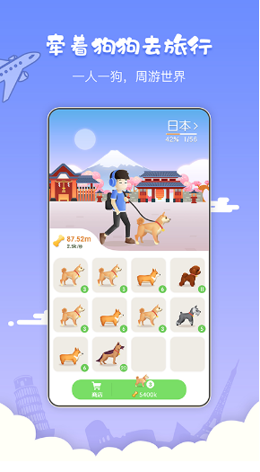 《牵着狗狗去旅行游戏赚钱版》是一款治愈系十足的手游,一人一狗带着狗狗周游世界,合成你的狗狗还可以轻松收钱,是一款非常不错的赚钱服务平台,让大家在这款治愈系的游戏中也能赚钱,是一款非常好玩且能赚钱的手机游戏!