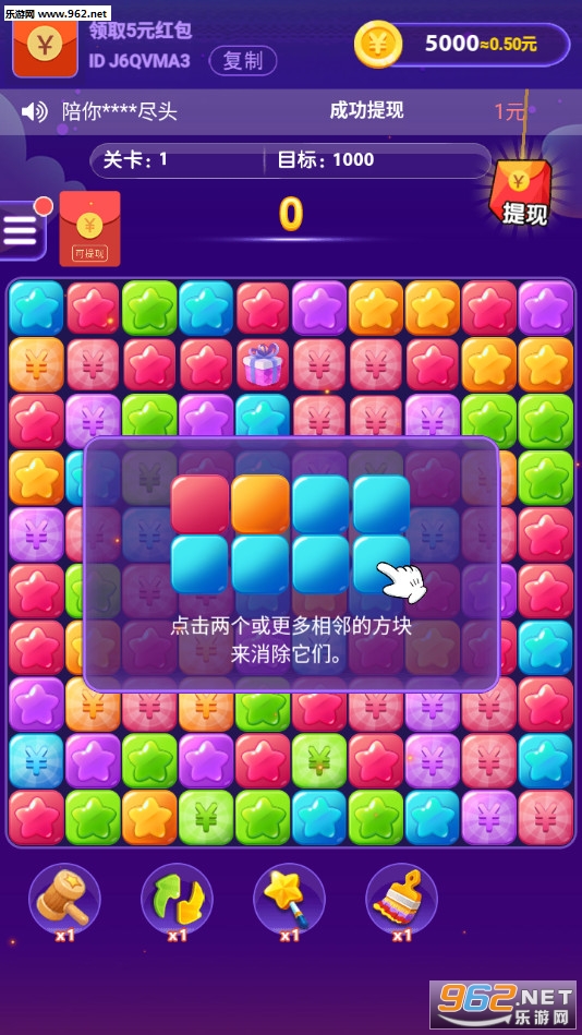 3、那些道具都是可以帮助玩家在消除的时候出现暴击,可以消除一大片的方块获得积分;