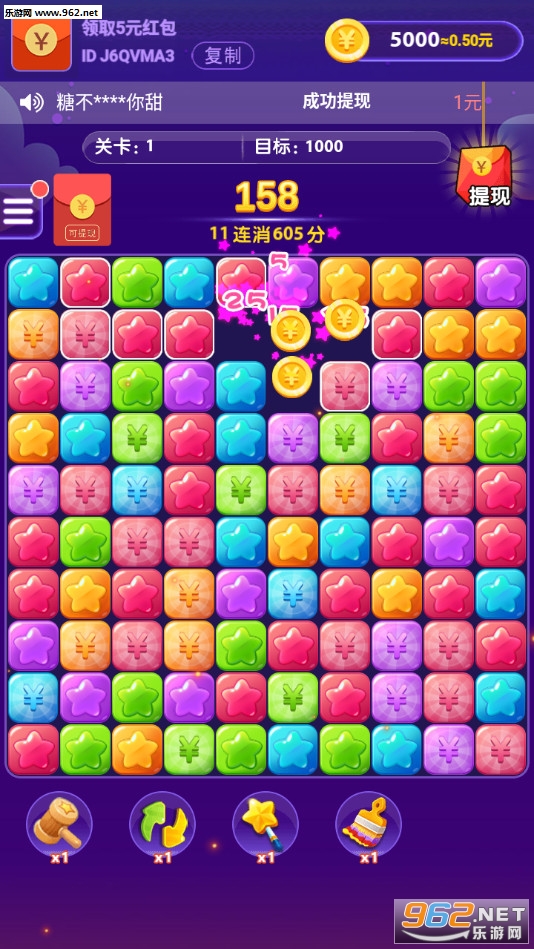 星星大消除红包版是一款画面色彩鲜艳,关卡挑战乐趣知足的休闲闯关型游戏,经典的规则设定,在三消的基础上进行了更加多样的变革,衍生除了不同程度的消除方式,花样更多玩家体验过程也更有趣,对于通关的帮助也会比较大,观察界面内各种星星的位置分布情况,让每次消除都会变得格外简单。
