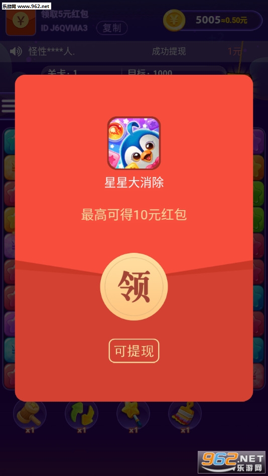 《星星大消除红包版》是一款非常不错的消除赚钱app软件,用户可以通过游玩消除关卡来获得红包奖励,闯过的关卡越多红包就越多,还有着丰富的福利等待你的领取,游戏的操作简单容易上手,让你一边游戏一边赚钱,还在等什么呢?赶快点击下载吧!