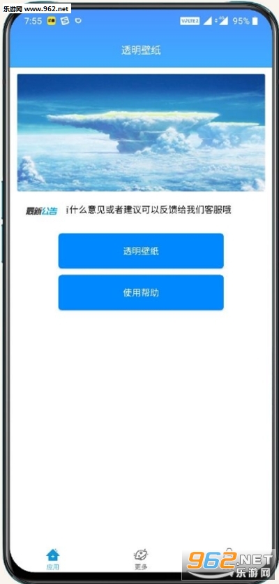 《透明壁纸软件》是一款安卓透明壁纸图片设置工具,大家可以直接利用此软件来将你的手机壁纸设置成透明的形式,让你的手机看起来更加的酷炫,除此之外,平台上面还有好多其他的壁纸素材让你自由的选择,赶紧来下载试试吧!