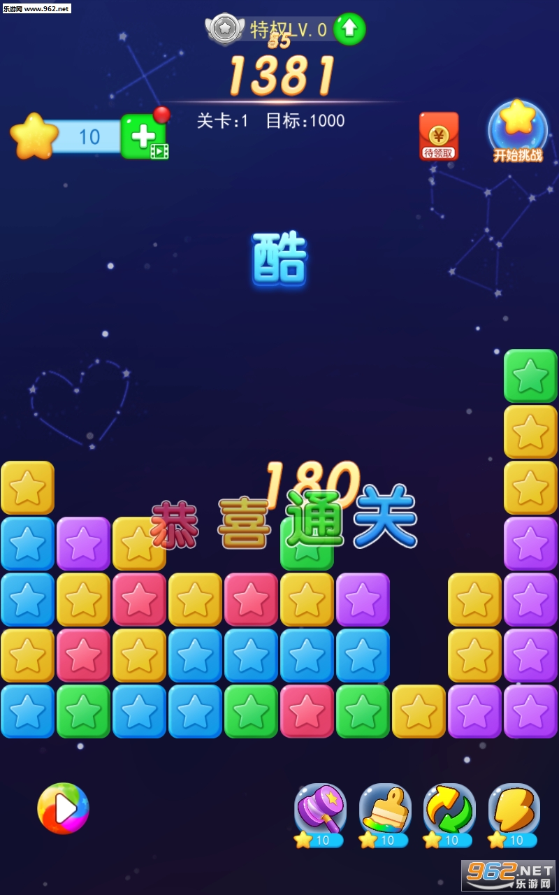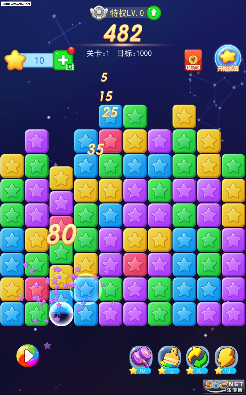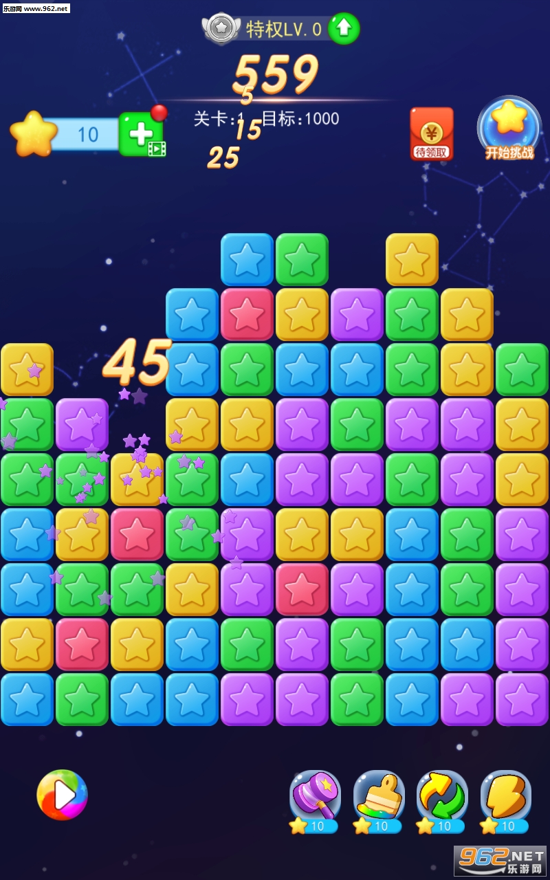 1.玩家在游戏中可以通过三个相同颜色的星星进行消除