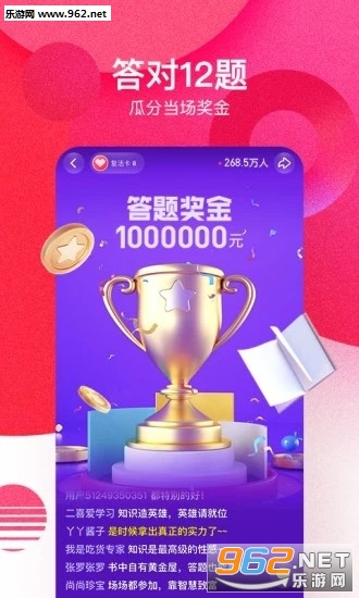 3、每天都有超多的玩家在玩这款游戏,我们可以一起参与到答题挑战中,获得积分。