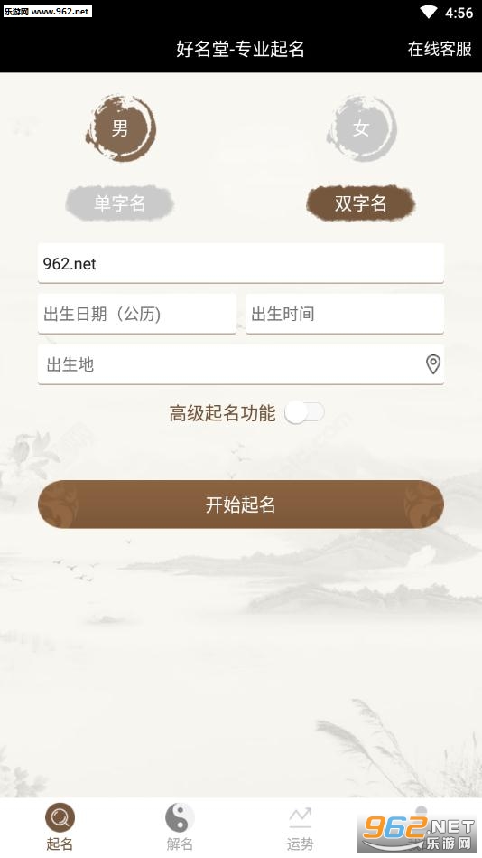 附带的周易超吉筛选功能,100万名字可选