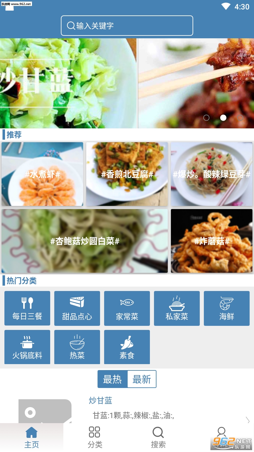 菜达人APP是一个非常好用的食谱软件,汇集了各种精致可口的菜肴的制作过程,用户随时都可以根据平台上面的菜谱,自己在家制作出美味可口的食物,这里有很多热门的菜谱分类,不管是各种家常菜还是私房菜,还是有特色的甜品小吃,都可以让你快速的学会,有了这款软件,想吃什么好吃的就可以自己动手做,既健康又卫生,放心。