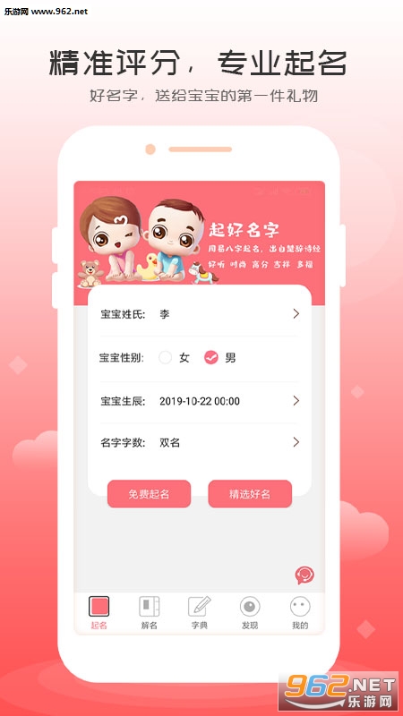 1.【免费解名】:生辰八字,三才五格,生肖喜忌为婴儿小孩起名字测试打分,让你了解姓名的吉凶寓意。