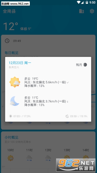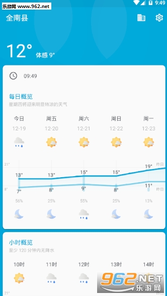 2、小时概览,为你预报具体的小时天气;