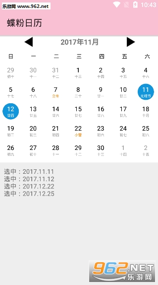 《蝶粉日历app》是一款日历查看软件,能够记录每天所做的事情,设置提醒,以及了解当天的风俗文化等等。