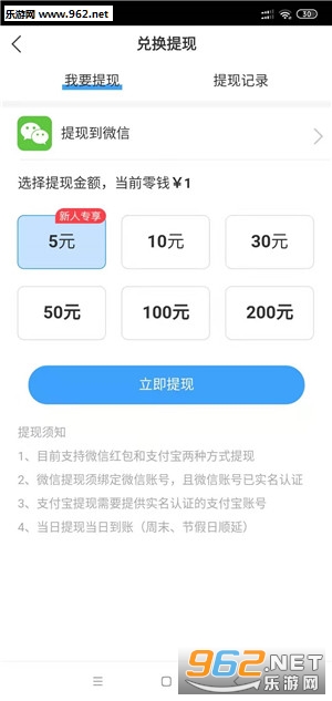 5、新人专享5元提现,之后满10元提现,支持/支付宝当日到账