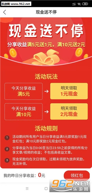 3、每天分享收益满5元送1元,满10元送2元,现金送不停