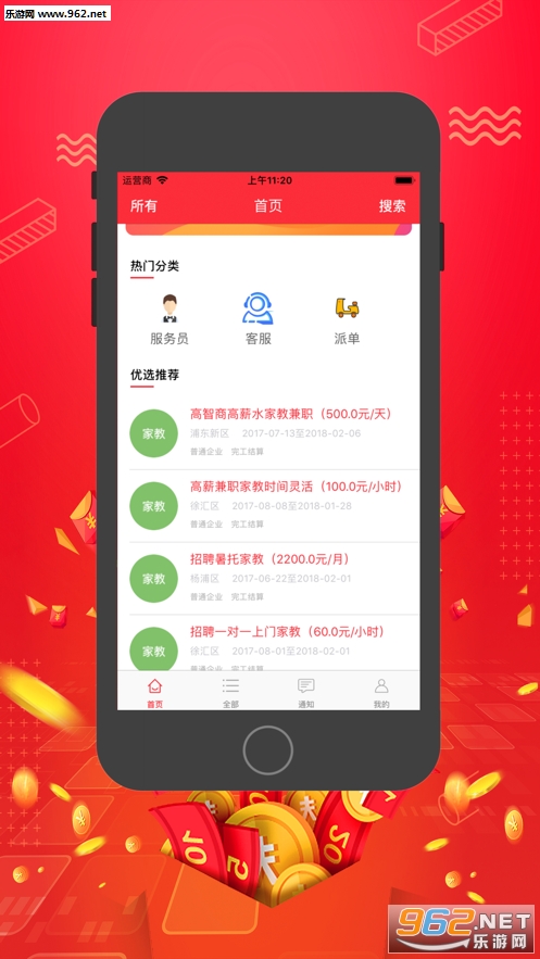 《日日赚app》是一款融合各种不同类型兼职的app,用户可以通过本软件找到不同的工作,平面设计、IT职业、游戏等等。