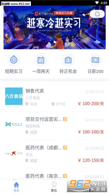 这是一款帮你去找工作的软件,毕竟马上就就要到寒假了,而有的大学已经在这个时候让学校的学生出去实习,如果你找不到适合自己的工作,不妨来这里是一下,十分的方便,并且还提供了很多不错的岗位。