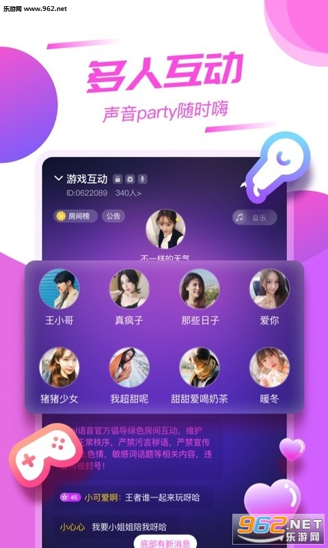 2、丰富的语音玩法,游戏开黑、互动K歌、听故事,等等。