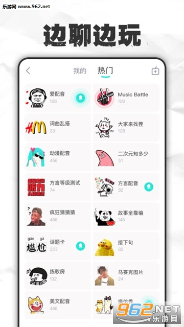 现在年轻人交友一般都是以兴趣爱好为主,看对方与自己是否是好的人就必须看他的兴趣是什么,通过点击可以轻松创建更加有趣的玩法,软件包含了超多有趣的聊天内容,各种奇葩有趣的交友手段可以查看,打造最有趣的k歌配音玩法,让交友互动更加轻松!