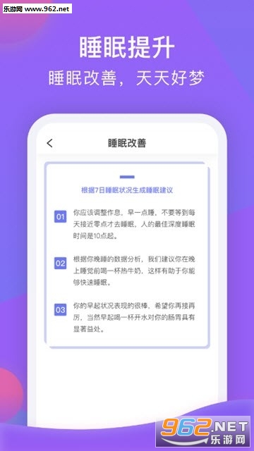 3、根据7日睡眠状况生成睡觉建议,助你改善睡眠;