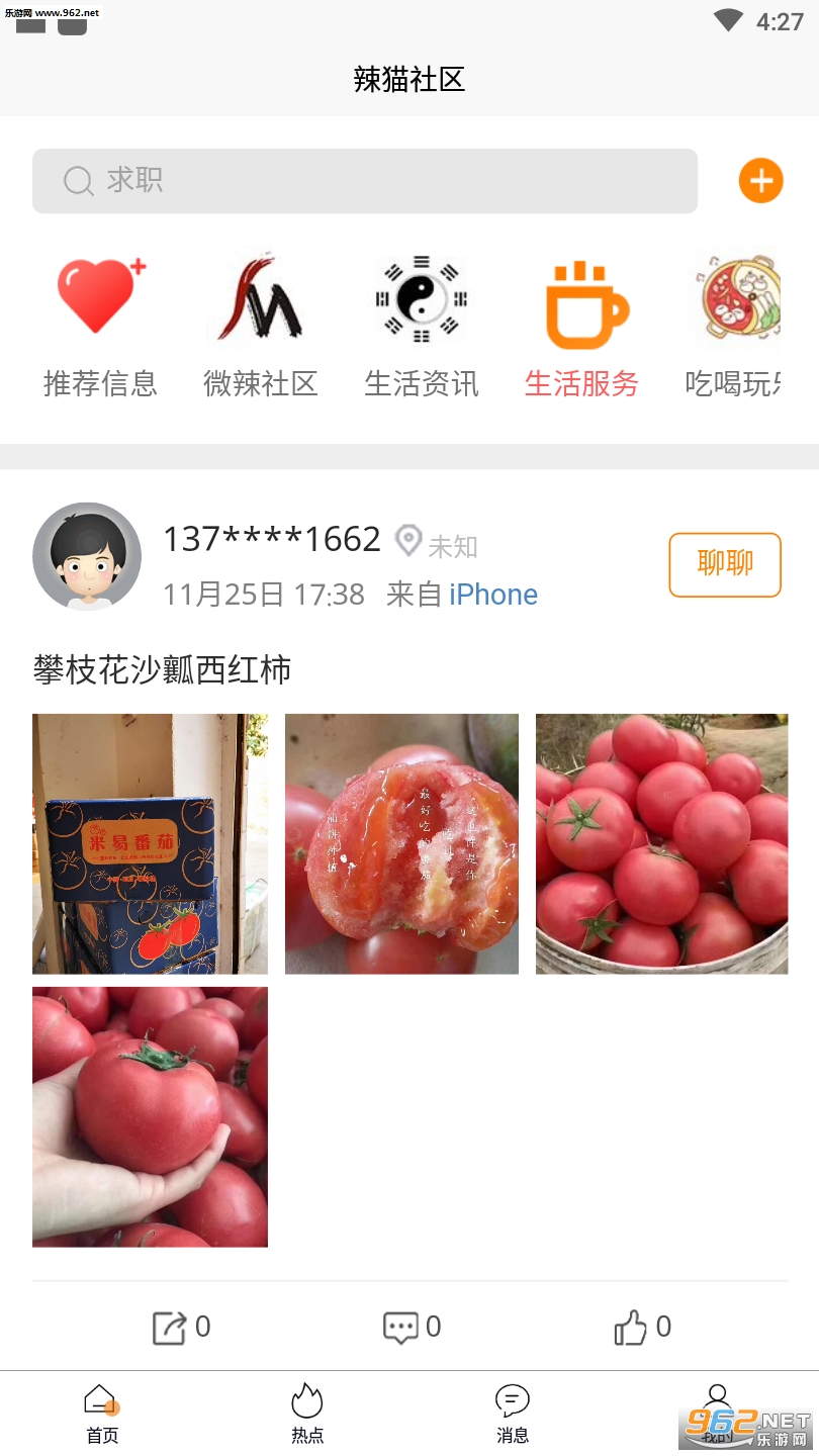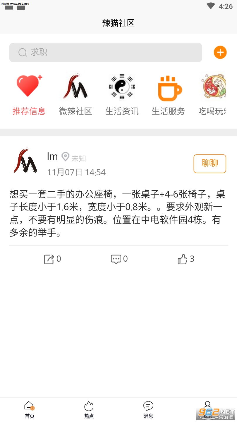 辣猫社区app是一个可以为大家的生活带来更多的便利的综合服务类的软件,这里汇聚了各种优质的生活类的服务功能,像二手交易、工作求职、家政服务等等,对于很多与这类生活需求的朋友们而言绝对是一款十分实用的软件,如果你也整好需要就赶快来这里进行下载使用吧。