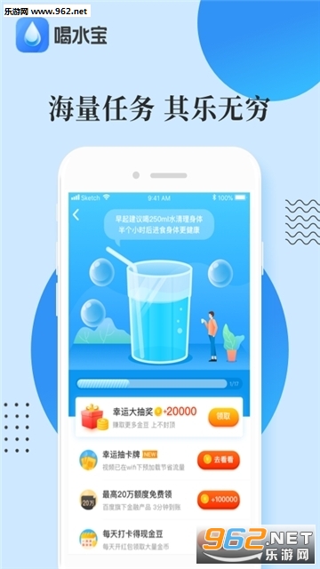 喝水宝宝app是为用户们提供的喝水就能轻松赚钱的软件,用户们需要每天坚持打卡完成喝水任务才能拿到奖励,而且该APP会给用户们提供智能的提醒服务。