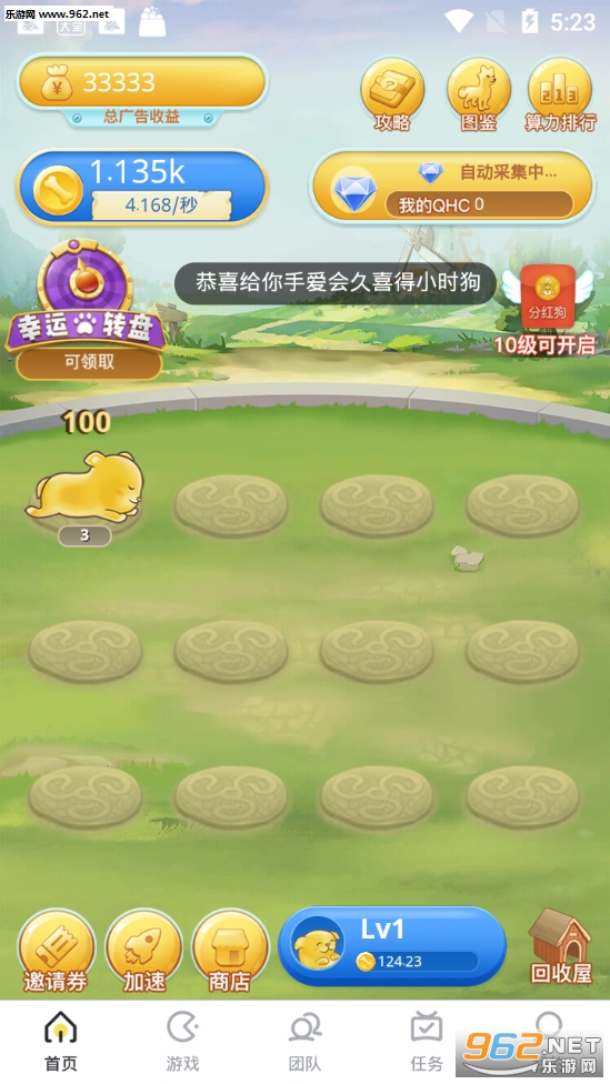 1、当合成升级狗狗到10级,25级可以抽分红狗,抽到后就可以坐享收益了。