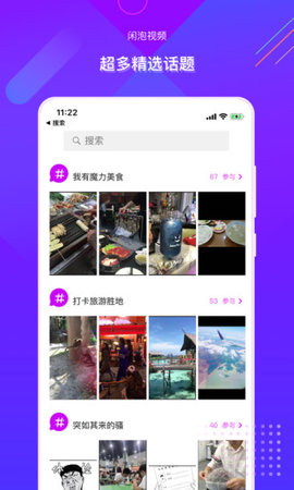 闲泡是一款创意搞笑短视频,聚合全网魔性、猎奇、趣闻、搞笑、逗逼、美女内容给你其乐无穷、嗨翻生活,各路奇趣汇聚,各种笑点不断,闲看在手,寂寞无聊不再有。