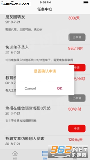 应用会不定期发布一些任务,只要按步奏完成任务并提交,就可以获取到任务所标佣金。