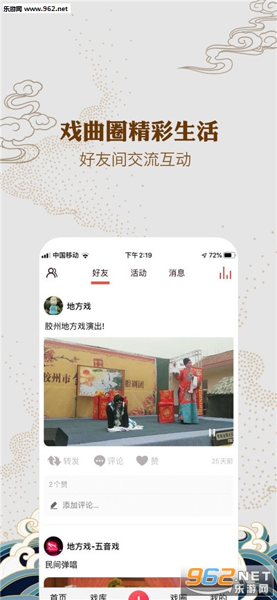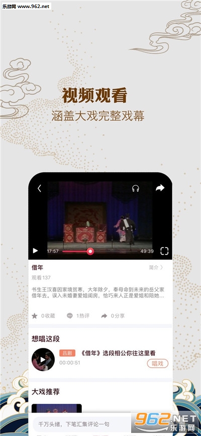 地方戏APP戏曲互动情景创造者,是看戏、听戏、唱戏的移动地方戏舞台,集经典大戏、名家互动、戏曲短视频创作、戏曲社交为一体的互联网戏曲综合服务应用。