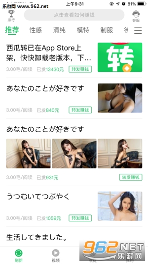 西瓜转是一款刚上线不久的转发兼职手赚平台。任务主要集中在APP首页,把首页的图文信息转发到群或者朋友圈有人点击的话,就有一个点击收益,就有钱赚啦!