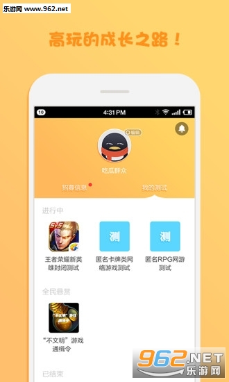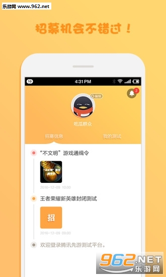 1、发现最新的好玩游戏参与到游戏内测招募;
