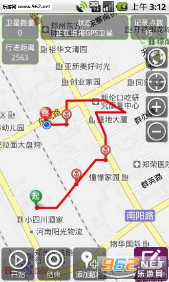 还有就是线路追踪,线路的追踪功能能够记录下我们从开始到结束走过的路程,这个是一个常用的功能,在线路开始的时候按开始,然后等走完以后结束即可以。