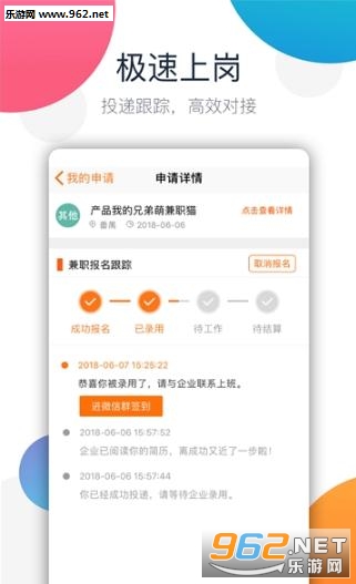 兼职喵app是一款可以轻松赚钱零用钱的找兼职app,这里有海量岗位,多重审核,信息都是真实靠谱的,且你投递完毕以后,可以快速跟踪你的岗位情况,一有通知就可以快速上岗,不会错过机会哦,既丰富了你的生活,还可以赚取额外的钱。