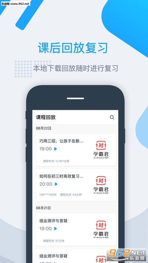 《学霸君有课app》是一款在线学习软件,采用小班轮播的方式,模拟真实课堂,有问必答,能够较好的关注到每个学生的学习情况。
