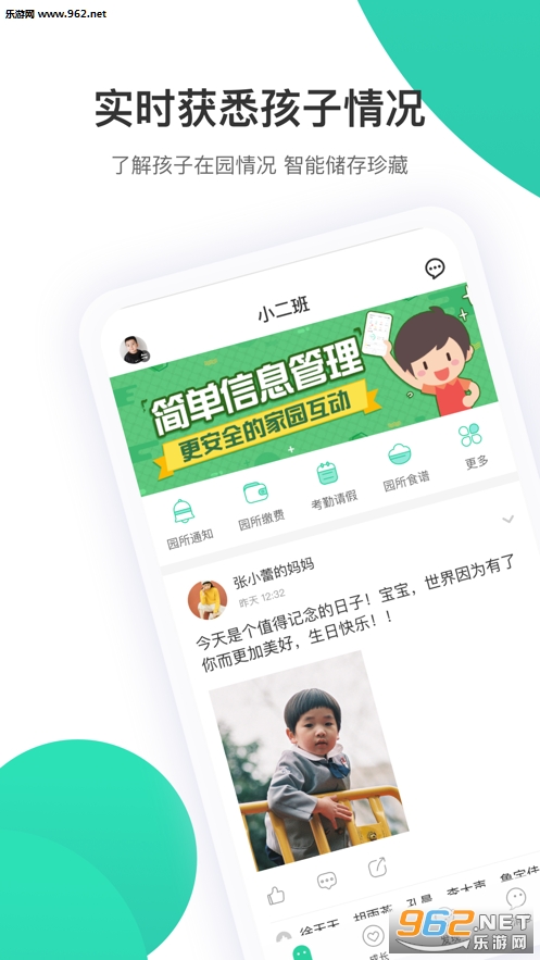 2、实时的获悉到孩子的在园的情况;