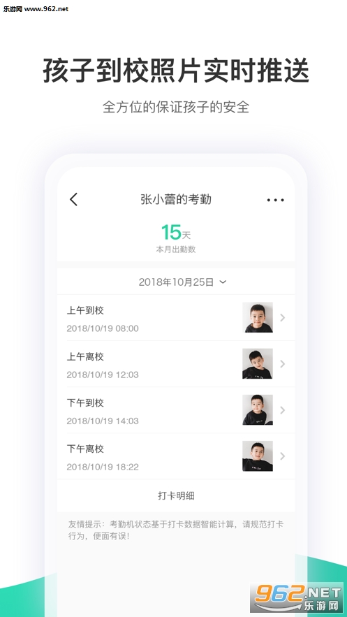 1、孩子到校照片实时的进行推送;