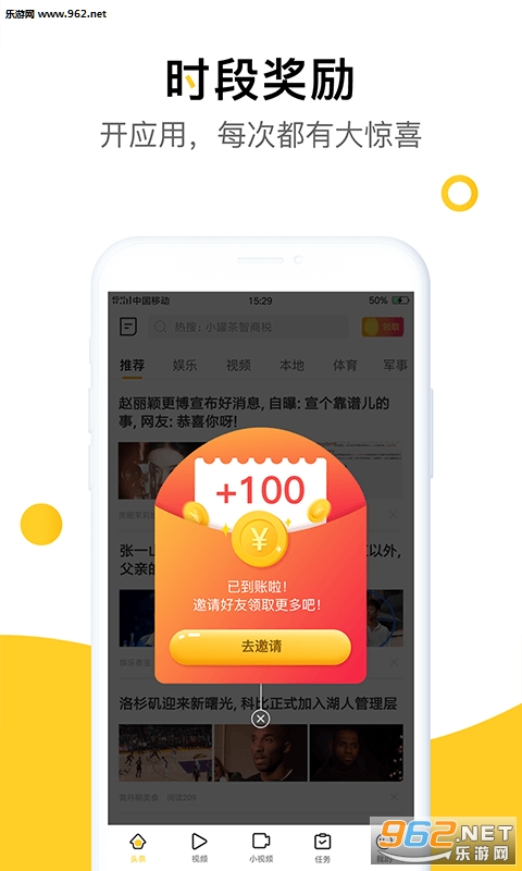 阅读观看视频就能轻松赚零花钱,邀请亲朋好友就能一起搜刮更多现金红包!