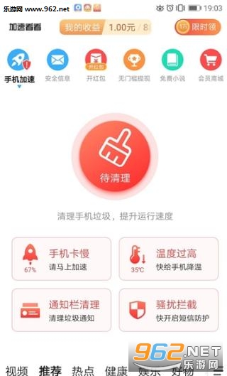 《加速看看app》软件有非常棒的垃圾清理功能,可以帮助您清理掉手机里的垃圾文件。还可以通过垃圾清理获得红包奖励。奖励的红包可以提现哦,清理垃圾还能赚钱,是不是非常棒呢,喜欢的朋友欢迎下载使用。